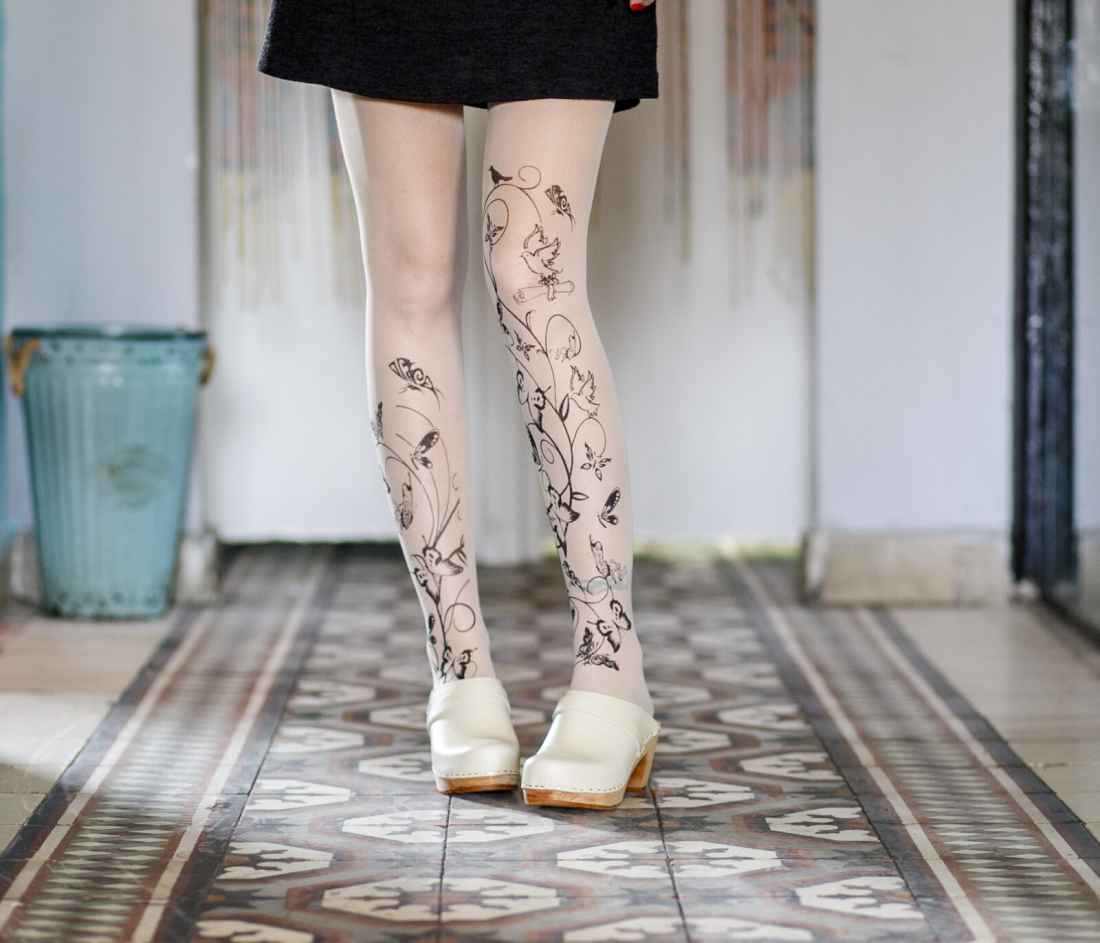 הגרביונים שהתאהבתן בהם. גרביון שקוף עם עיטורי פרחים לאורך כל הרגל.