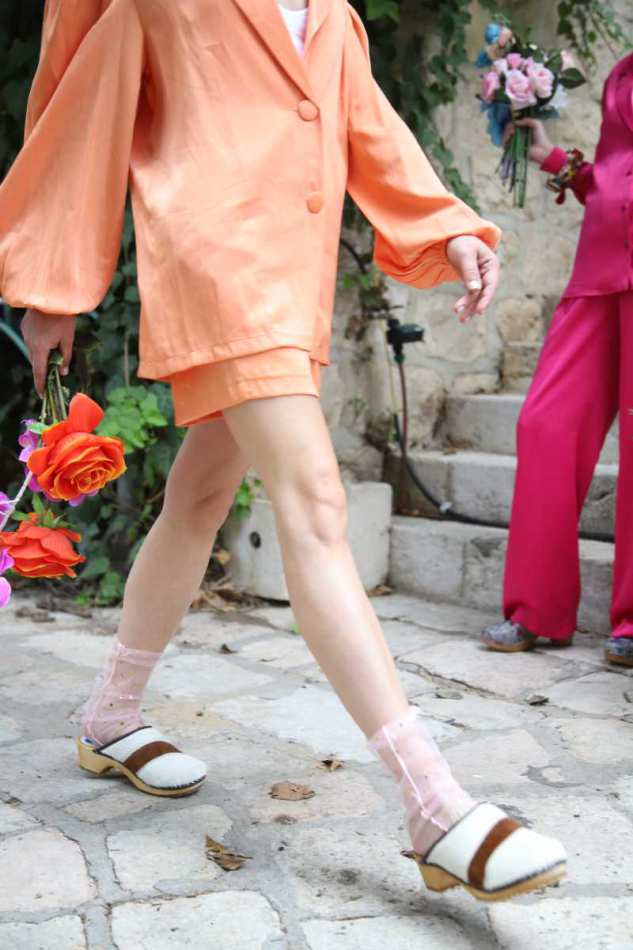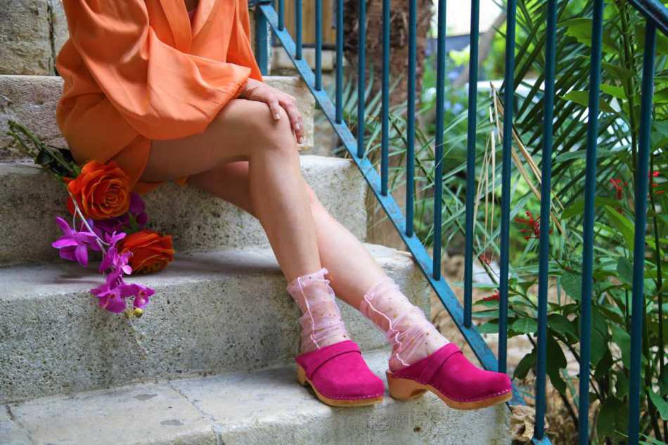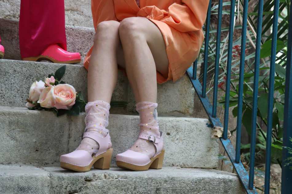 גרביים עדינים שמשתלבים נפלא עם קבקבי העץ של רונה.