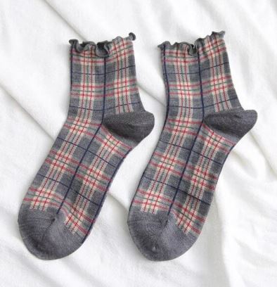 גרביי כותנה רכים ונעימים בדוגמת משבצות מהממות בשילוב צבעים אפור ואדום!