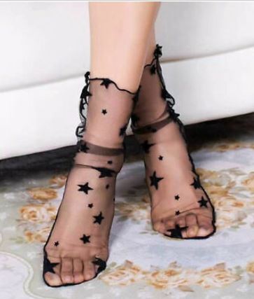 גרביים שקופים ורומנטיים במיוחד עם דוגמת כוכבים שחורים.