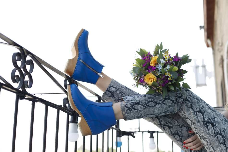 מגפוני סופיה של RONA CLOGS, בכחול רויאל מטריף