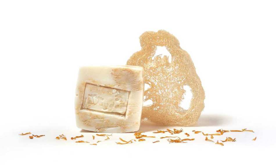 סבון מוצק מחומרים טבעיים בלבד, בניחוח נהדר שממריץ ומחדש את העור בזכות ספוג