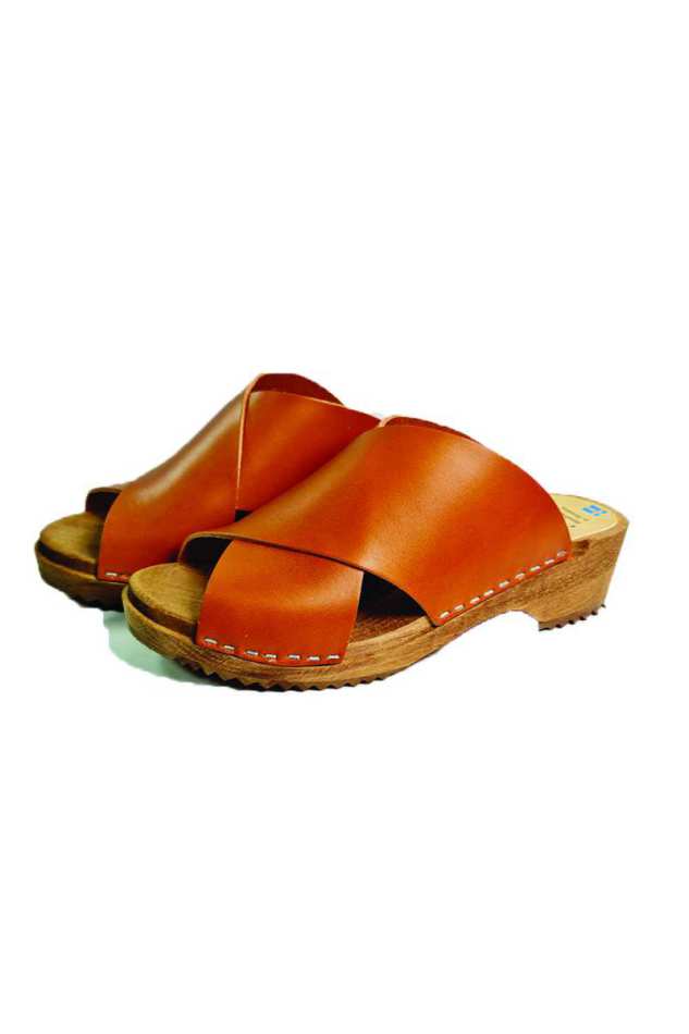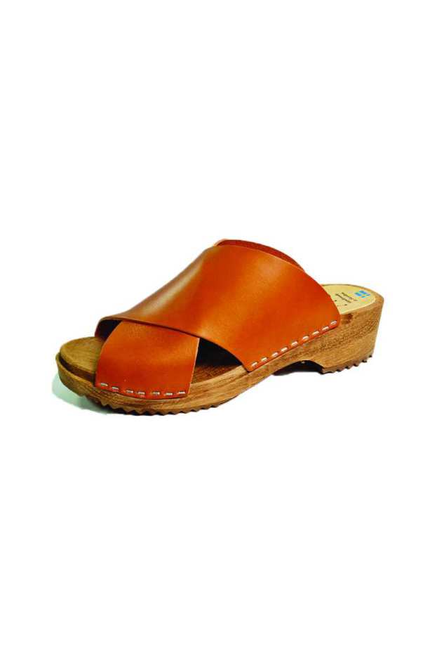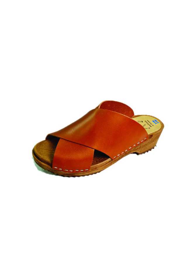 גפת עור איכותית בצבע וויסקי עשיר סוליית עץ ארגונומית קלה ונוחה לשמירה על יציבה