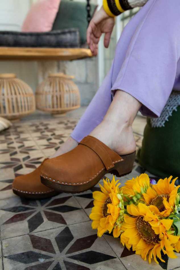 מוכנה? קבקבי עץ בצבע קאמל עשיר למראה מלא סטייל