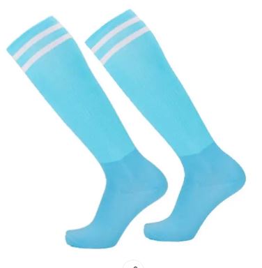 גרביים ספורטיביים ובעלי טוויסט מיוחד בצבע תכלת שמגיעים כמעט עד הברך