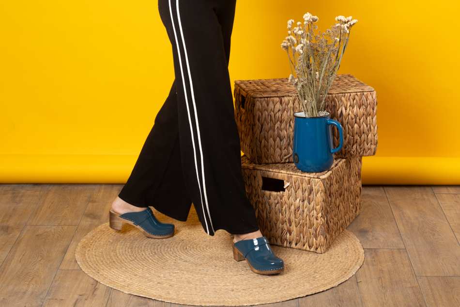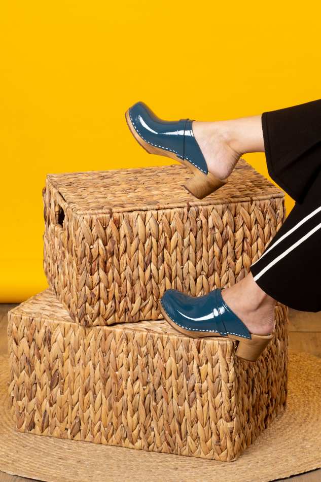 קבקבי עץ כחול אינדיגו לק עקב גבוה