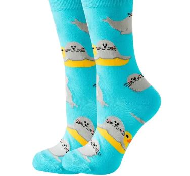 גרבי כותנה רכים ונעימים בצבע תכלת עם כלבי ים.