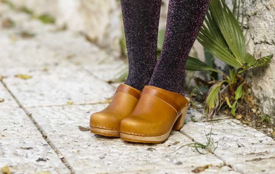 קבקבי עץ אורתופדיים משוודיה בצבע חום בהיר בגוון וויסקי