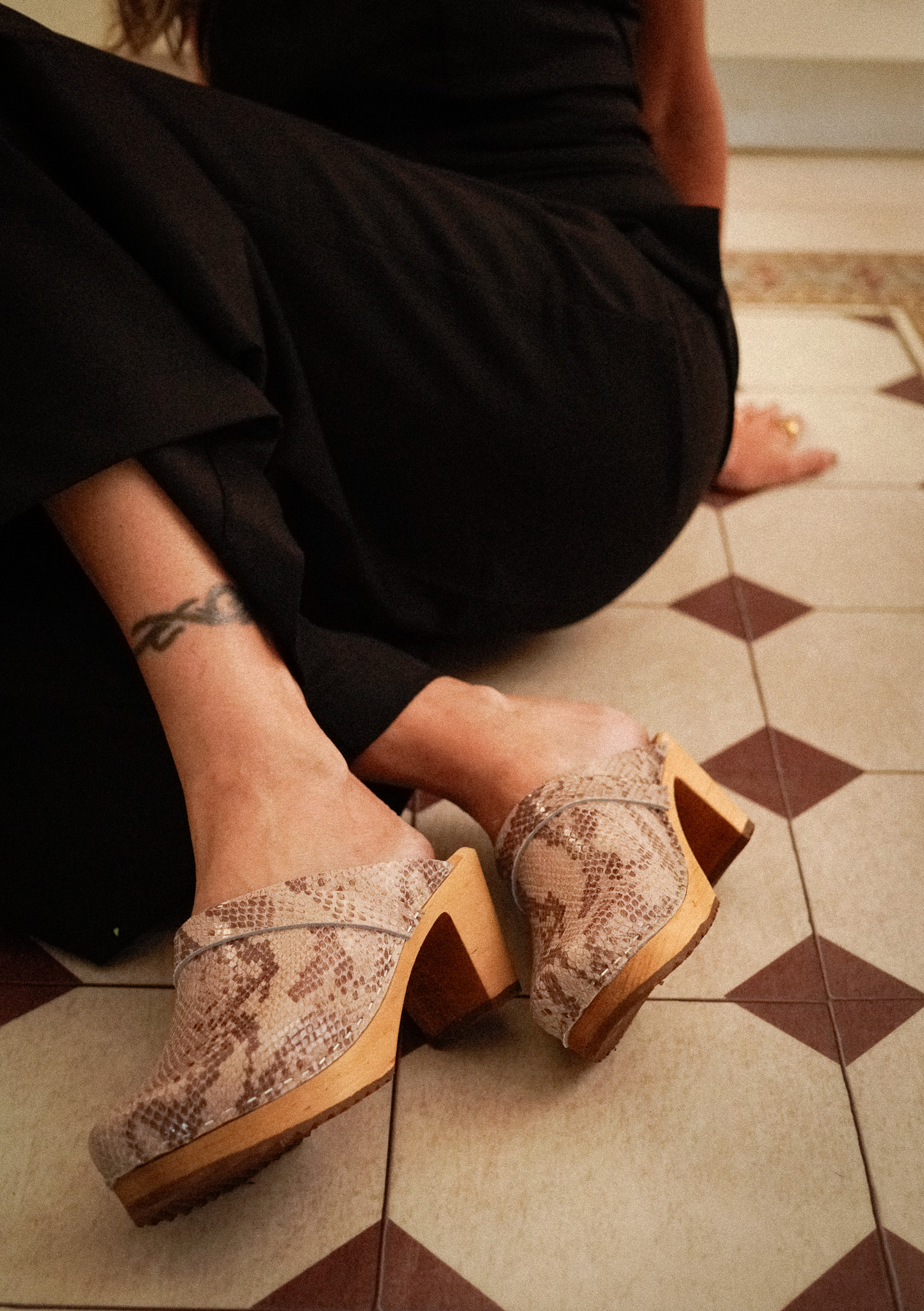 קבקבי עץ אורתופדיים משוודיה בטקסטורת נחש בצבע שחור